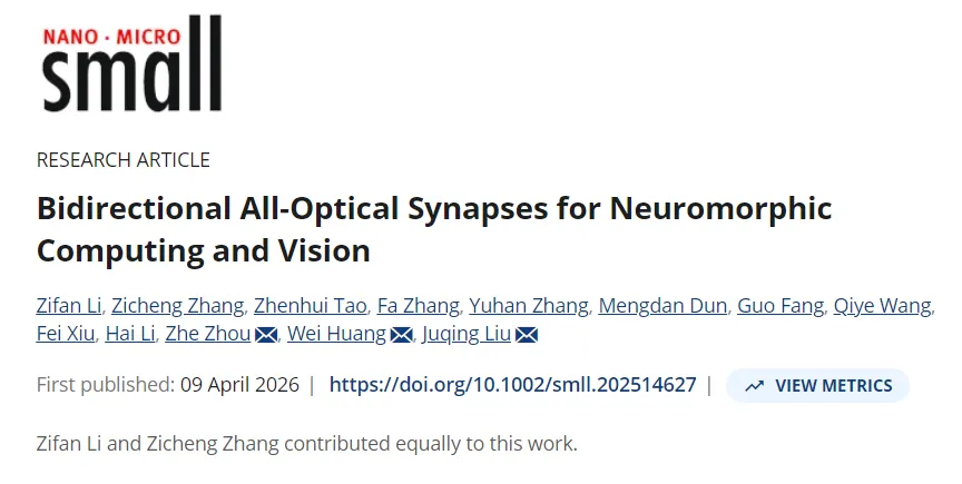 南京工业大学,Small,用于神经形态计算与视觉的双向全光突触