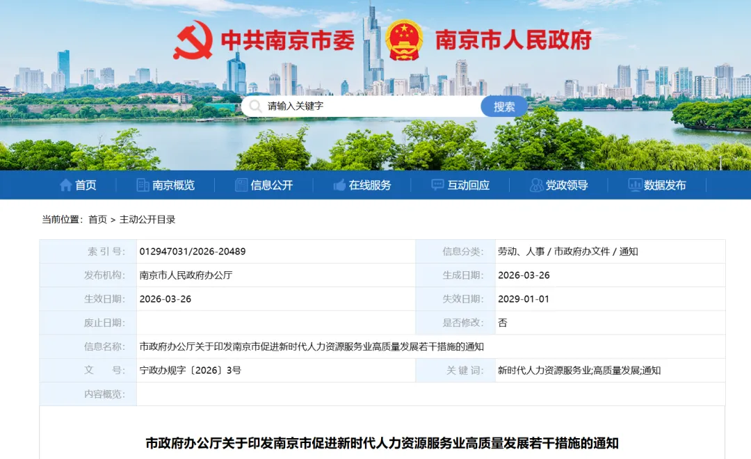 南京市促进新时代人力资源服务业高质量发展若干措施