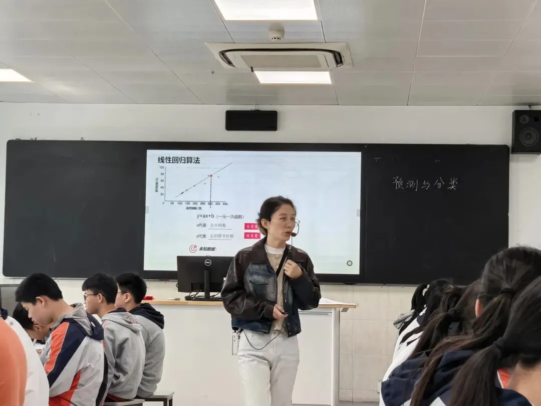 授课教师精准把握课程主旨,以生活化情境为切入点,从学生熟悉的天气预测、房价预测等场景入手,循序渐进地引出预测与分类的核心概念,彻底打破了我以往对这类理论性知识教学的固有认知。课堂没有局限于单纯的知识讲解,而是通过任务驱动、小组探究、实操体验等多元化教学方式,引导学生主动参与到数据收集、规律探寻、模型构建的过程中,让学生在动手实践中理解“依据数据做预测、基于特征做分类”的核心逻辑,真正实现了“做中学、用中学、创中学”。