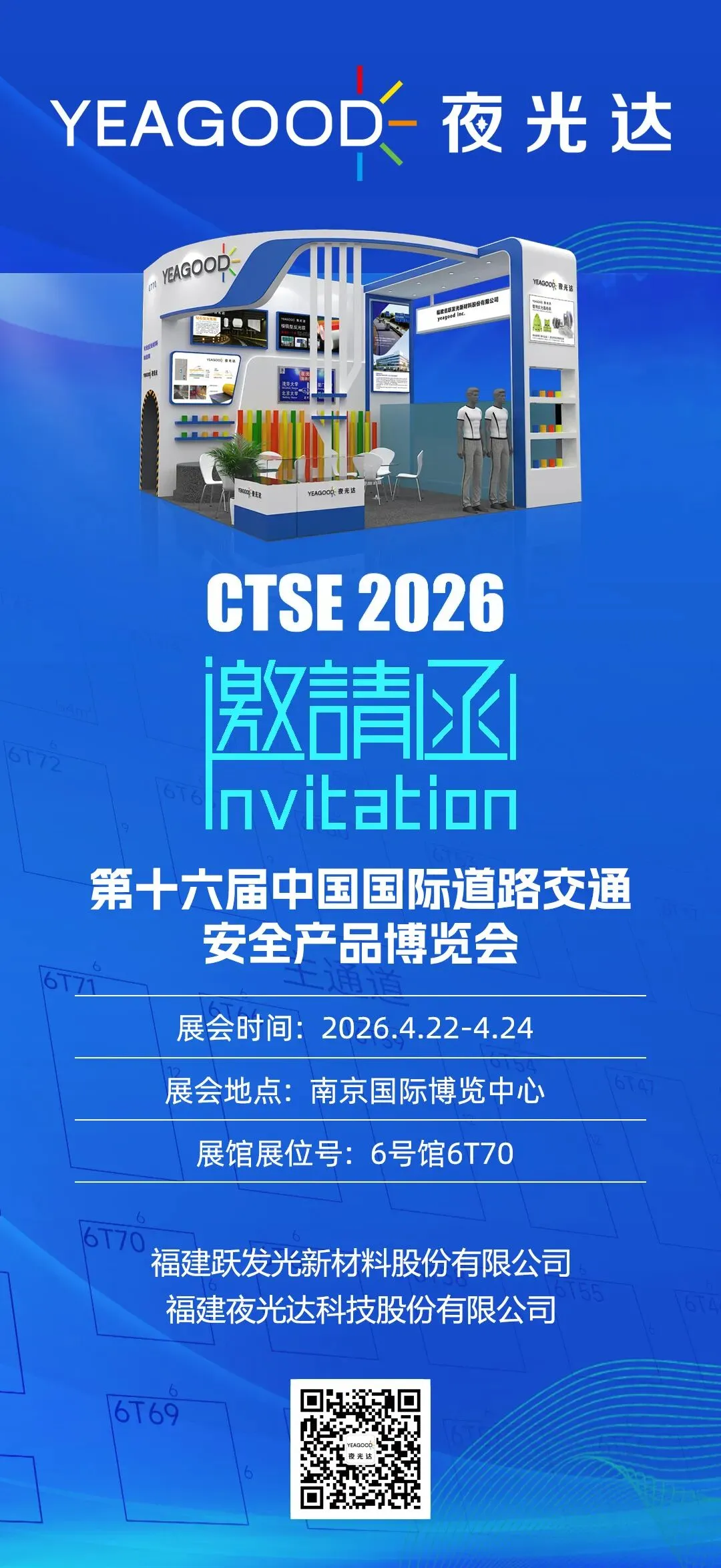 首先感谢您一如既往对夜光达的支持与厚爱。我们诚挚邀请您参加于2026年4月22日-24日在南京国际博览中心举办的“第十六届中国国际道路交通安全产品博览会”。诚邀各位莅临我司展位:6T70参观指导、交流合作!