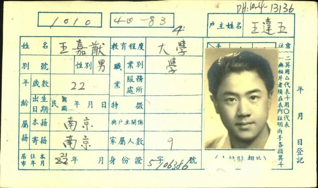 王嘉猷户籍卡
