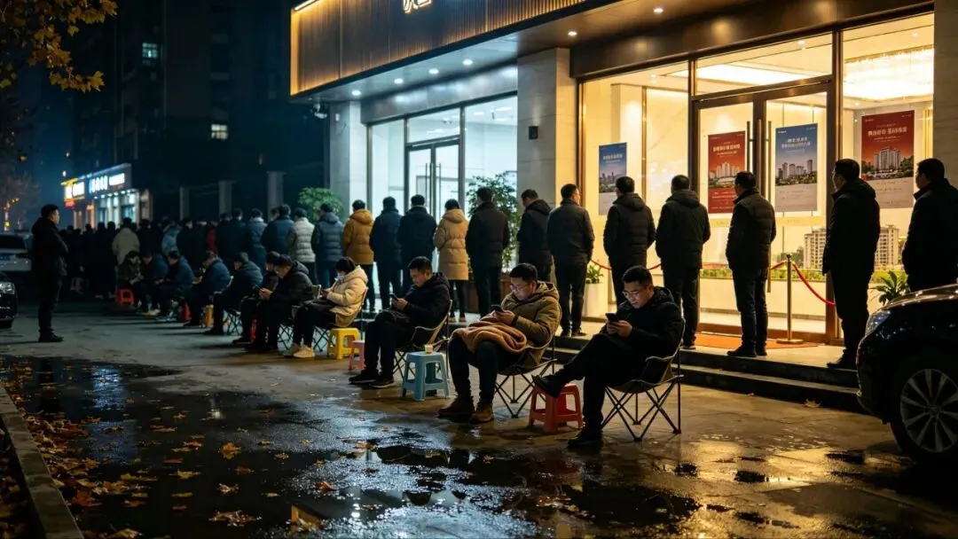 这是一场“蓄谋已久”的抢购。该楼盘于5日下午突然宣布加推93套房源,并遵循 “先到先得” 的规则。这一消息瞬间点燃了购房者的焦虑。到了晚上10点,队伍已排成长龙,有人甚至准备好了通宵的装备。