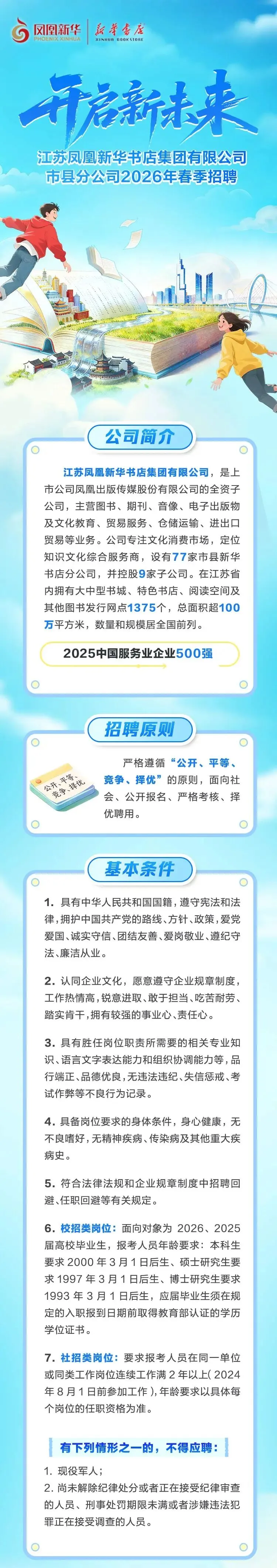 >南京招聘|江苏凤凰新华书店集团有限公司市县分公司2026年春季招聘