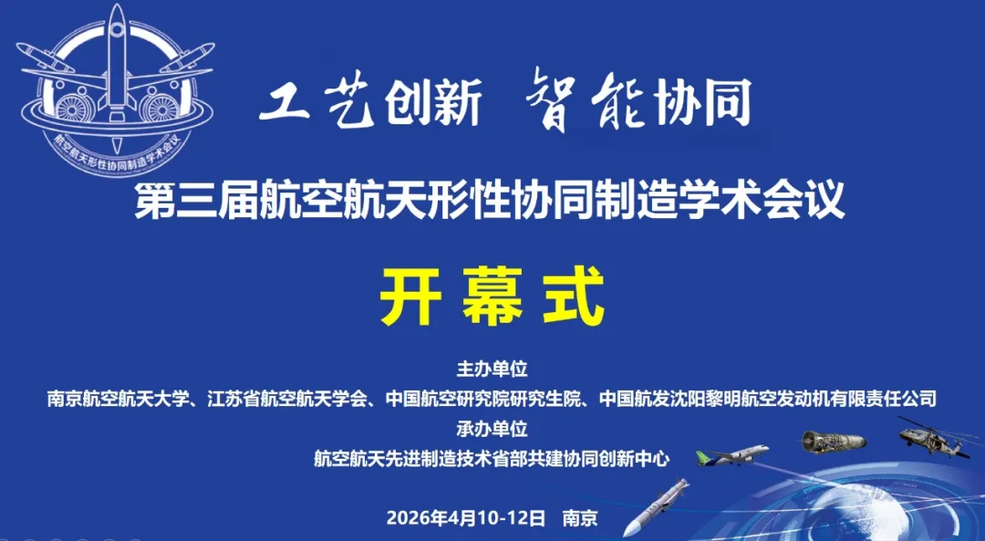继前两届会议成功举办、搭建起行业交流桥梁后,2026年4月10—12日,第三届航空航天形性协同制造学术会议在南京圆满落幕。本次会议以“工艺创新・智能协同”为主题,汇聚行业精英、共探技术前沿、共促成果转化,为我国航空航天制造领域高质量发展注入新活力。