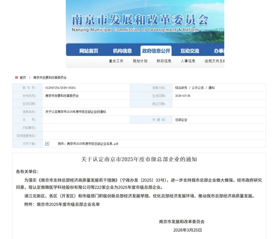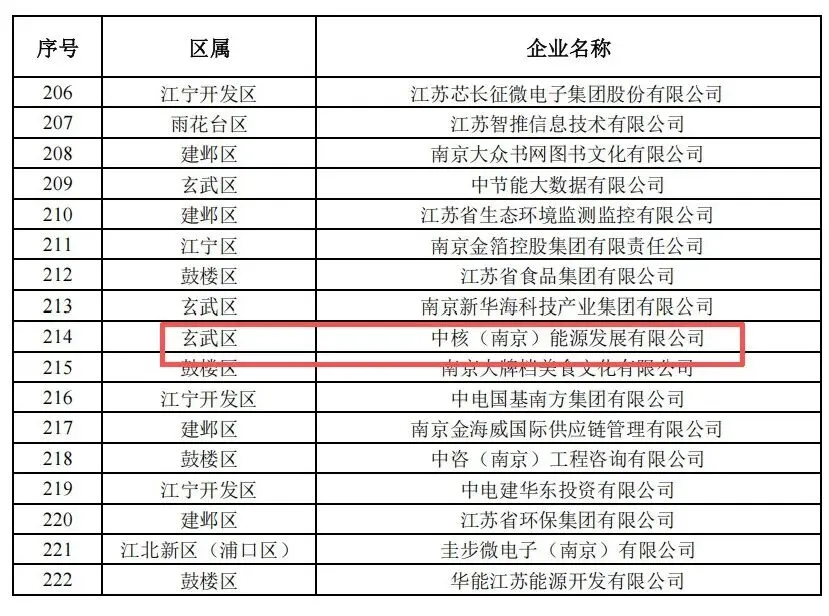 近日,南京市发展和改革委员会正式发布《关于认定南京市 2025 年度市级总部企业的通知》。中核(南京)能源发展有限公司凭借在能源领域的突出贡献和综合实力,成功入选南京市总部企业名录,荣获“南京市总部企业”荣誉称号。