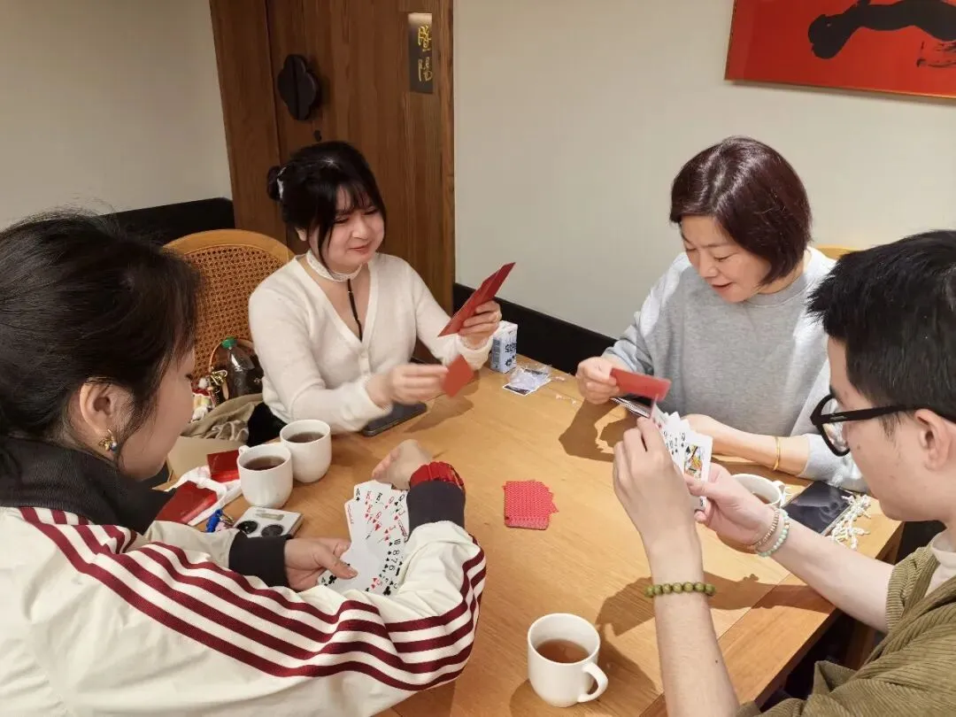 早茶过后,秘书长杨吉与会员们自发组队开启掼蛋联谊。牌桌上搭档默契、笑语不断,在你来我往的轻松互动中,乡情愈发浓厚,也为本次温馨相聚画上圆满句号。相聚的时光虽短,但乡情的联结与健康的守护,早已深深扎根。期待下一次再相聚,共叙乡音,共话美好!