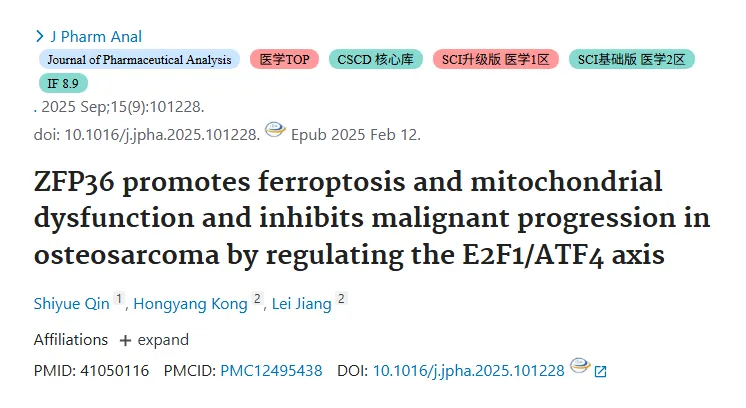 骨肉瘤(OS)恶性程度高、预后差,亟需明确分子机制。铁死亡是 OS 进展关键,ZFP36 作为铁死亡调控基因在 OS 中低表达,但其功能及机制未明。E2F1、ATF4 分别参与肿瘤发生及铁死亡调控。本研究探究 ZFP36/E2F1/ATF4 轴对 OS 铁死亡及恶性进展的调控,为治疗提供新靶点。
