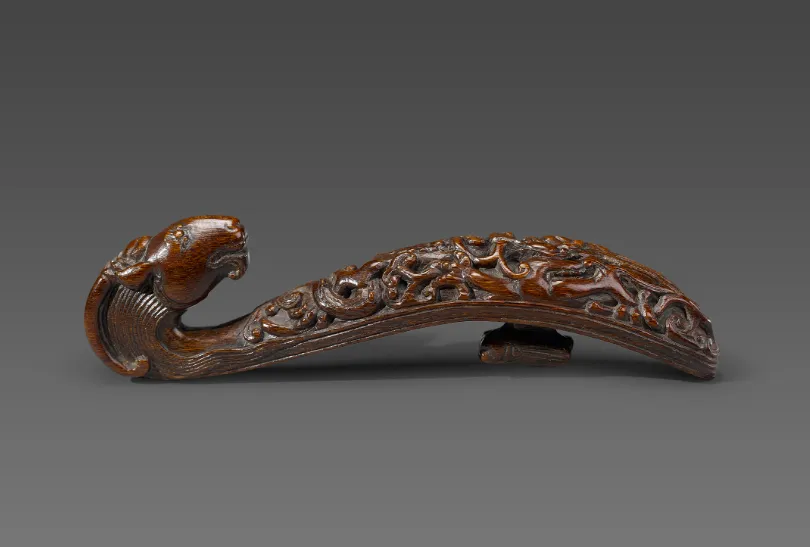 明·犀角雕兽首带钩