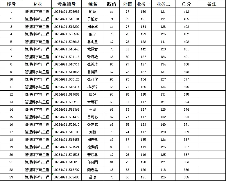 总录取19人,其中最高分412,最低分385,复试23人,录取率为82.61%,难度系数易。