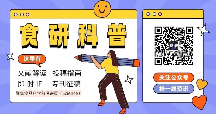 免责声明:「原创」仅代表原创编译,仅供学术交流,本平台不主张原文的版权,如有侵权,请联系删除。文献解读如有疏漏之处,我们深表歉意,请作者团队及时联系《食研科普》小编(微信号:gw52528),小编会在第一时间进行修改或撤稿重发,感谢您的谅解!