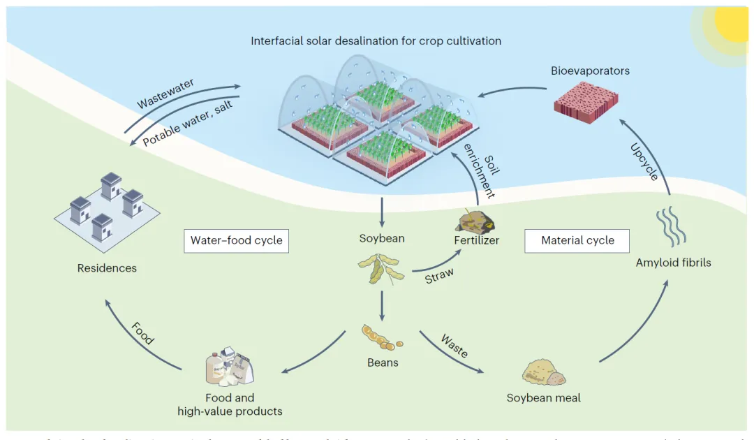 图1 基于淀粉样纤维的生物蒸发器实现的太阳能驱动环形海水淡化农业