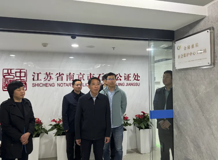 2026年4月13日下午,中国残联教育就业部副主任崔瑞芳、省残联党组成员副理事长廖章波、市残联党组成员副理事长乐松等莅临南京市石城公证处,专题调研残疾人救助帮扶、托付安置及社会监护服务工作。江苏省司法厅公证管理处处长沈叶波,南京市石城公证处副主任徐梁栋等陪同调研。