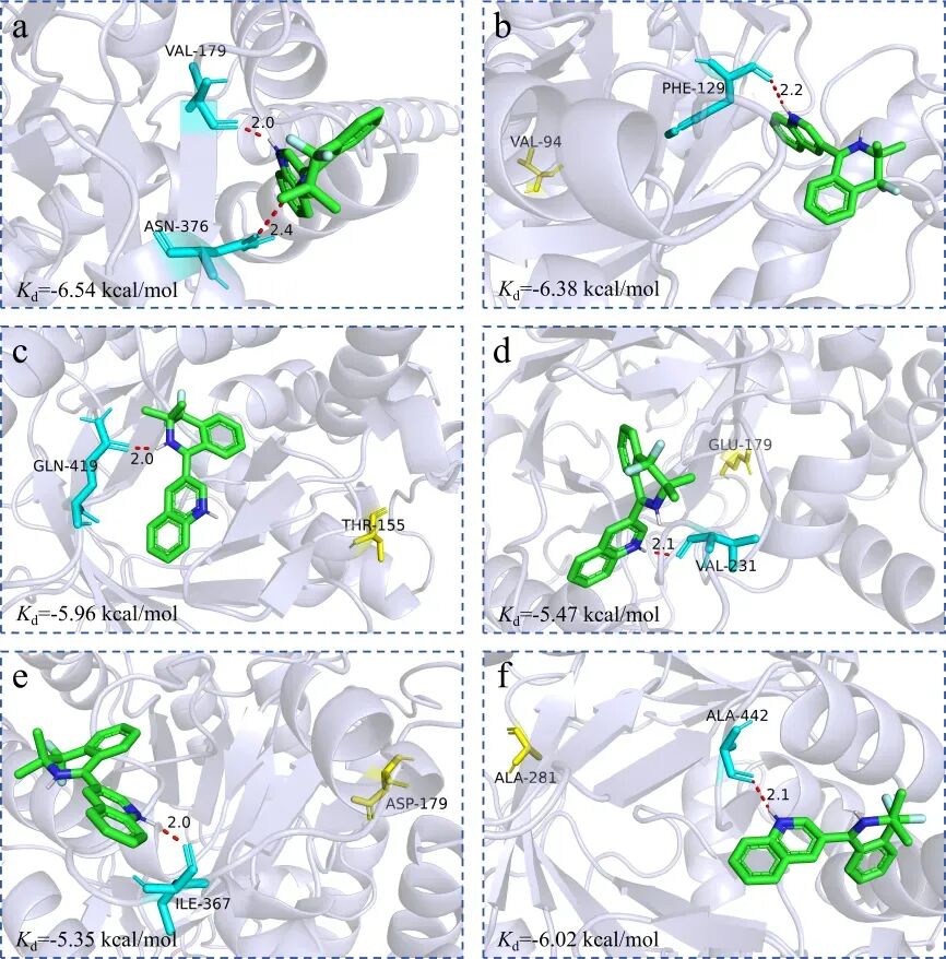 近日,南京农业大学植物保护学院杀菌剂生物学团队段亚冰教授与周明国教授课题组在中科院一区TOP期刊《Molecular Plant Pathology》上发表了题为“Molecular Mechanism Underlying Resistance Variation to the Novel Agrochemical Quinofumelin in Fusarium graminearum”的研究论文。该研究系统阐明了禾谷镰孢菌对新型喹啉类杀菌剂quinofumelin产生抗药性的分子基础,为该药剂的科学应用及新型靶向杀菌剂创制提供了重要理论依据。Quinofumelin作为一种新型广谱杀菌剂,具有独特的作用机制,对多种重要作物病害均有显著防效。此前,段亚冰教授与周明国教授团队已在《eLife》发表重磅研究,首次发现quinofumelin的作用靶标为嘧啶从头合成途径的关键酶-二氢乳清酸脱氢酶(DHODH),这一发现拓宽了杀菌剂的作用靶标类型。在此基础上,团队进一步围绕禾谷镰孢菌对quinofumelin的抗药性分子机制展开深入研究。研究利用AlphaFold3构建了FgDHODHII的三维结构,并结合分子对接与同源重组技术,构建了5个FgDHODHII定点突变体,明确了155、179、281位氨基酸是调控禾谷镰孢菌对quinofumelin产生抗性的关键位点。其中,FgDHODHII-D155T突变体表现为低水平抗性,FgDHODHII-N281A突变体为中等水平抗性,FgDHODHII-V179E和FgDHODHII-V179D突变体则呈现高水平抗性。图1 PH-1及FgDHODHII突变体对quinofumelin的敏感性测定同时,研究发现quinofumelin抗性突变体存在明显的适合度代价,FgDHODHII-D155T、FgDHODHII-V179E、FgDHODHII-V179D和FgDHODHII-N281A抗性突变体的产孢能力和致病力均显著下降,这为田间延缓抗药性菌株的传播提供了天然优势。交互抗性结果显示,quinofumelin仅与同为DHODH抑制剂的ipflufenoquin存在交互抗性,而与其他常用杀菌剂(氰烯菌酯、多菌灵、戊唑醇、丙硫菌唑、氟唑菌酰羟胺、氟吡菌酰胺、苯并烯氟菌唑、吡唑醚菌酯和嘧菌酯)均无交互抗性,为田间杀菌剂的科学轮换使用提供了理论依据。图2 PH-1及FgDHODHII突变体致病力测定图3 Quinofumelin与其他杀菌剂的交互抗性分析此外,分子对接、分子动力学模拟及微量热泳动等技术手段进一步证实,D155T、V179E、V179D和N281A突变改变了FgDHODHII与quinofumelin的结合模式,导致二者结合亲和力显著下降,这是禾谷镰孢菌对quinofumelin产生抗药性的核心分子机制。图4 quinofumelin与FgDHODHII蛋白的分子对接分析图5 FgDHODHII-quinofumelin复合物的分子动力学模拟图6 quinofumelin与FgDHODHII的微量热泳动分析该研究从分子水平系统揭示了quinofumelin抗性形成的关键机制,不仅深化了对DHODH靶标功能的认识,也为新型杀菌剂quinofumelin的合理使用及抗药性管理策略的制定提供了重要科学依据。未来,基于DHODH靶标的精准农药设计与抗性风险评估将成为该领域的重要研究方向。南京农业大学在读博士生殷消茹为该论文的第一作者,段亚冰教授为通讯作者。该研究得到了国家重点研发计划(2022YFD1400100),农业与林业生物安全国家重点实验室联合研究计划(SKLJRP2510)和国家自然科学基金项目(32072448)的资助。