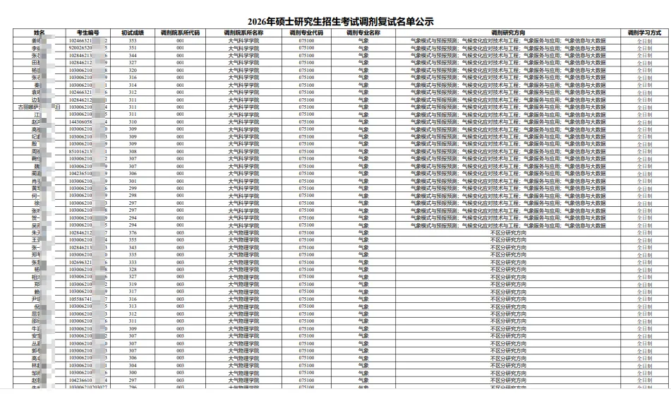 南京信息工程大学2026年硕士研究生招生考试调剂复试名单公示