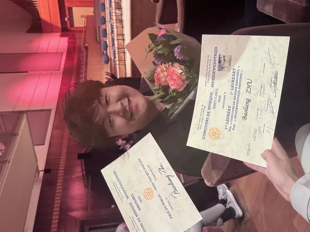 二是观众奖(PRIX DU PUBLIC):该奖项由现场观众投票产生,观众们把高票投给了朱保梁,说明他的演奏不仅征服了专业评委,也深深打动了普通听众,展现了极强的舞台感染力和艺术共鸣力。