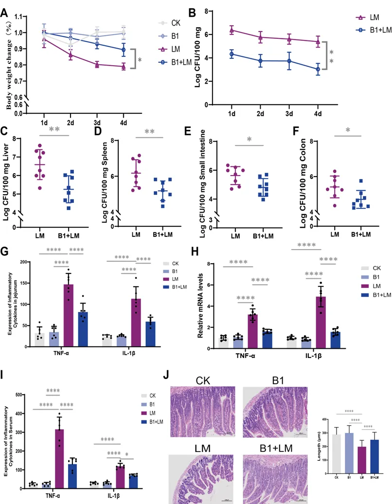 图1 屎肠球菌B1对小鼠单增李斯特菌感染的保护作用