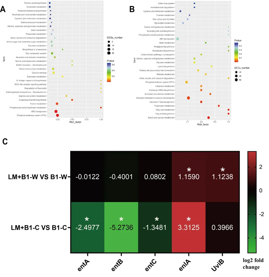 图5 体外胃肠道消化过程中屎肠球菌B1的转录组学分析
