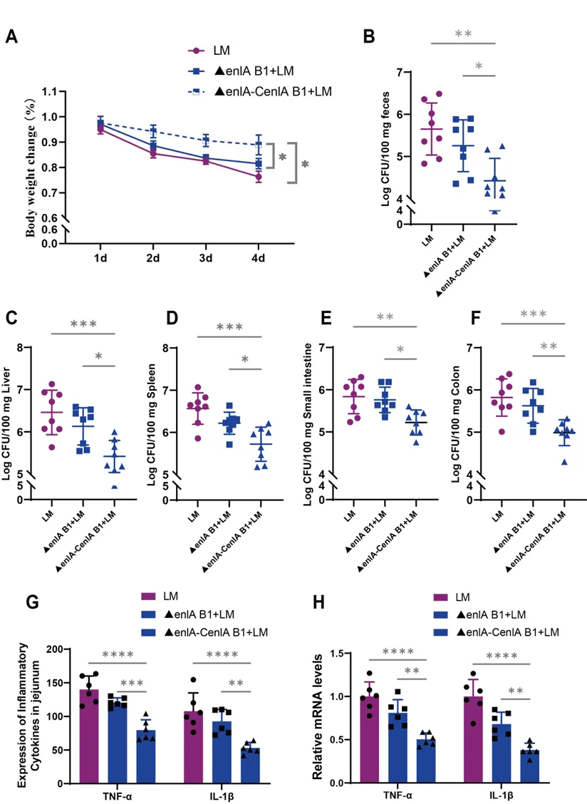图8 屎肠球菌B1 enlA基因介导的对小鼠单增李斯特菌感染的抑制作用