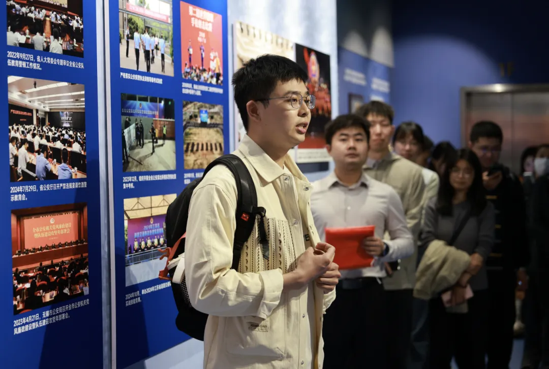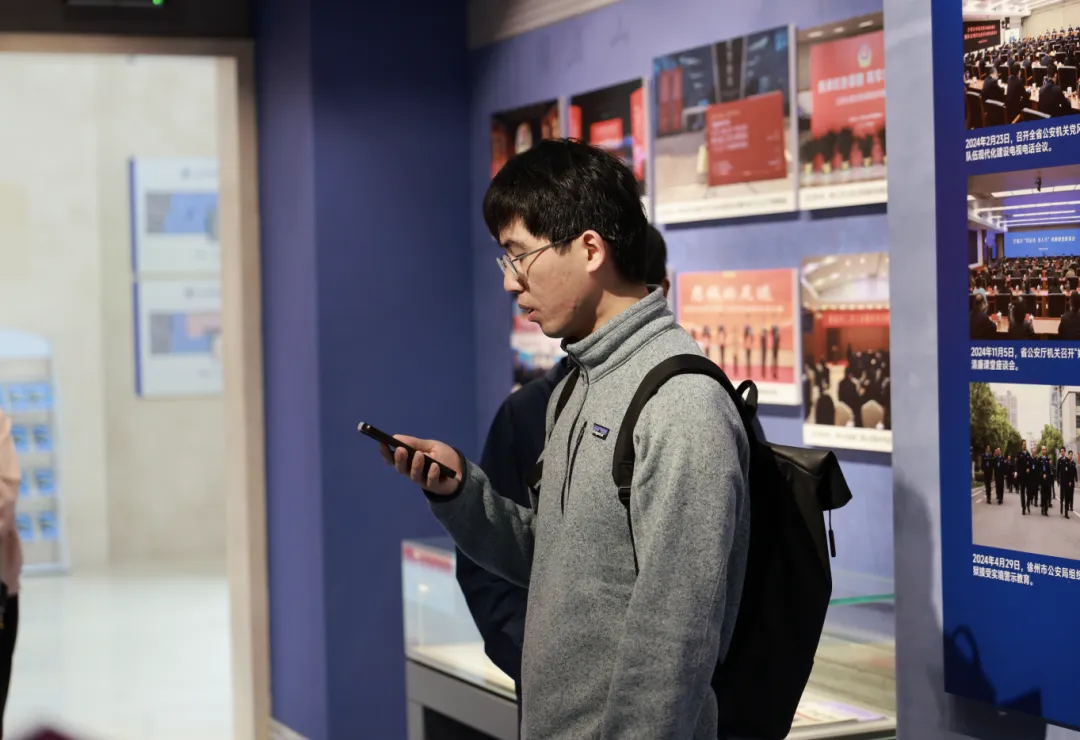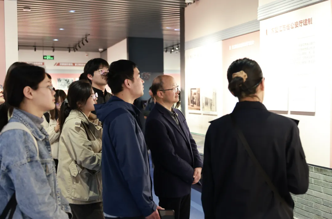 在馆方讲解员引导下,师生依次参观了博物馆四个展陈板块。展陈以江苏公安发展历程为主线,通过珍贵文物、历史图片和典型案例,系统呈现了江苏公安从革命战争年代到新时代忠诚履职、守护平安的奋斗历程。一件件实物、一幅幅照片、一段段史料,让大家深切体会到人民警察为捍卫国家政治安全、维护社会稳定和保障人民群众生命财产安全所作出的巨大牺牲与无私奉献,也更加深刻理解了“国家安全不是抽象概念,而是体现在万家灯火背后的坚守与守护”。