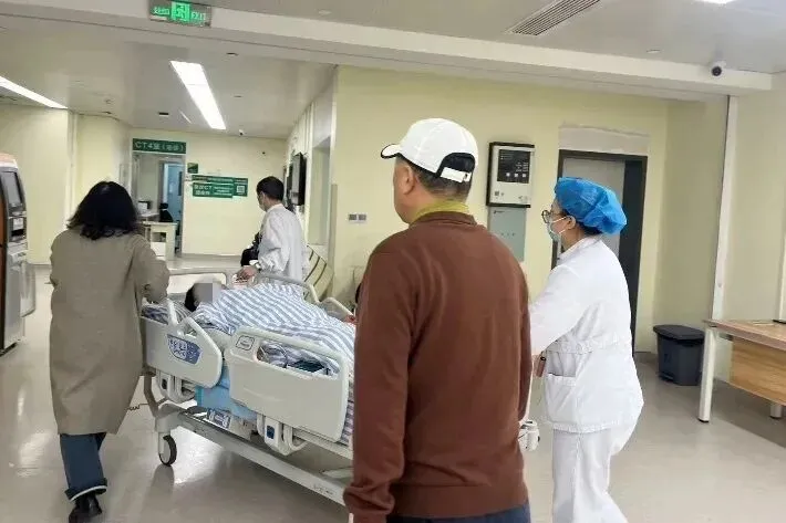 医护人员陪同古月天去往检查室