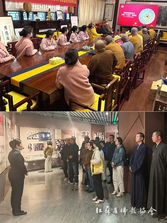 为将学习成果切实转化为爱国护教的自觉行动,南京市佛教协会指导溧水区、雨花台区、秦淮区等区级佛教协会,组织班子成员及僧众代表,先后赴溧水苏南反顽战役阵亡将士纪念塔、南京条约史料陈列馆(静海寺)、江苏省国家安全教育馆等教育基地,开展国家安全与爱国主义融合教育。江宁区佛教协会组织班子成员、各场所负责人,参加政策法规暨国家安全教育日培训,进一步提升防范意识与法治素养。