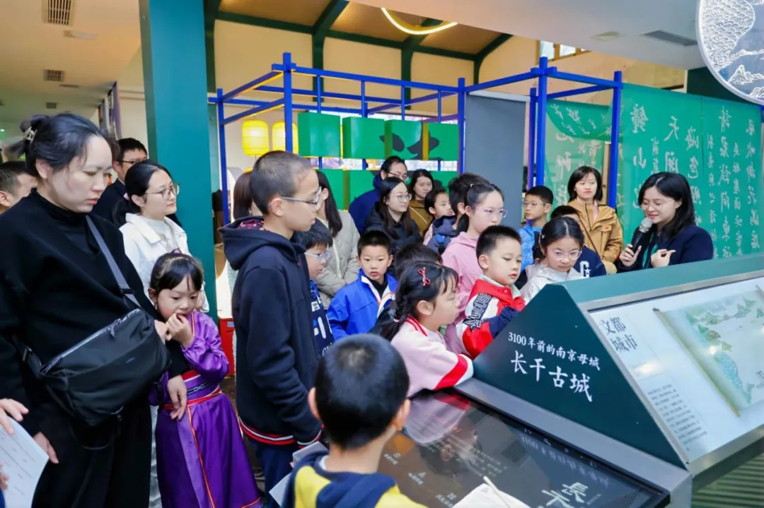 作为中国四大古都之一,南京拥有1800余年的文学历史,诞生了一万余部文学名作,有“天下文枢”的美誉。“《本草纲目》与南京颇具渊源,其作者李时珍不是南京人,这部书也不是在南京写的,却是在南京出版的,当时的三山街聚集了很多的出版商……”从文学巨匠到历史典籍,南京的文学脉络在讲解员的生动讲述中徐徐展开。孩子们围绕在旁侧耳倾听,家长们则在一旁与孩子轻声交流,共同感受这座城市深厚的文化底蕴。