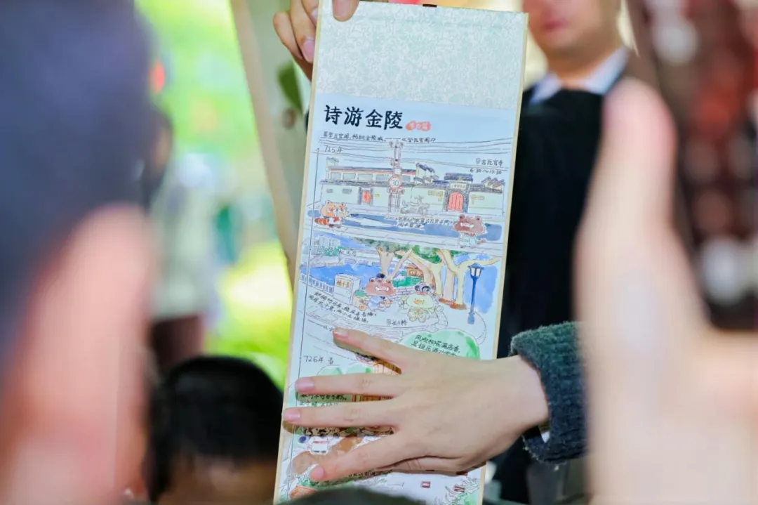 在李白诗歌展互动区,孩子们跟随虚拟诗仙齐声诵读、沉浸式互动;在文都春集体验环节,大家循着诗词文脉畅游金陵。家长们在一旁用镜头定格这些温馨的瞬间,与孩子共品诗中意、共赏文中情,整个文学客厅洋溢着亲子共读、以文传情的温暖氛围。