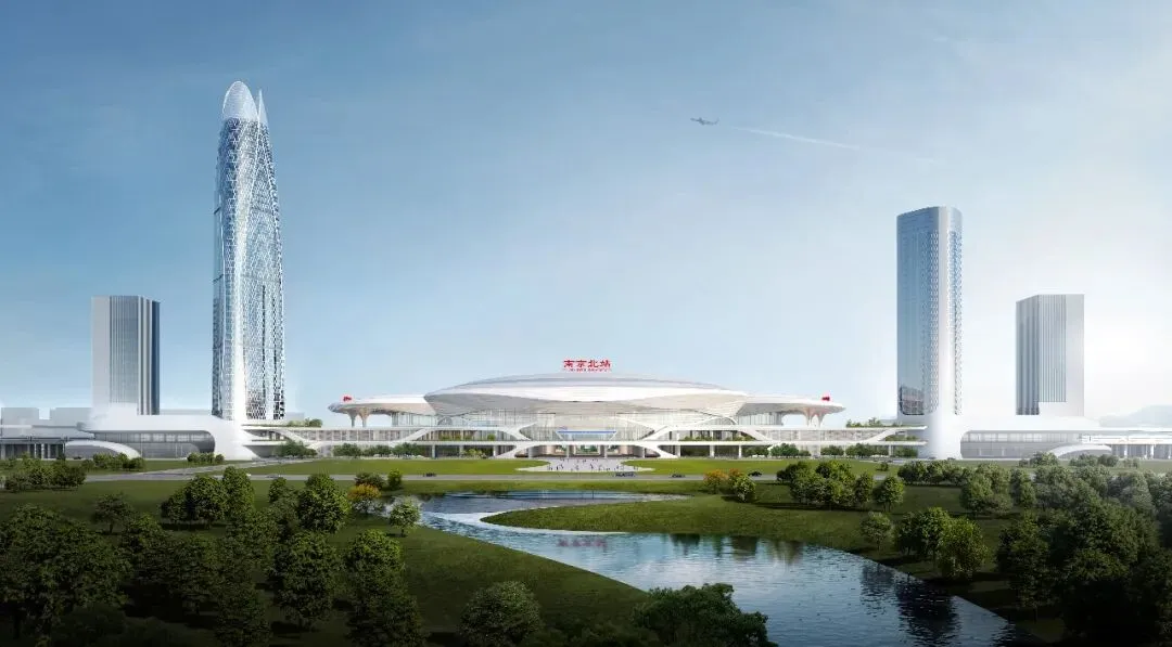 南京江北新区枢纽经济发展管理办公室相关负责人介绍,其“核中核”正是位于长江北岸,南临浦泗路、北靠朱家山河的南京北站。北站总建筑面积达69.21万平方米,采用“高架站场+立体换乘”设计,站场规模为3场16台30线,超越南京南站的15台28线,建成后将成为南京铁路枢纽规模最大的主客站。