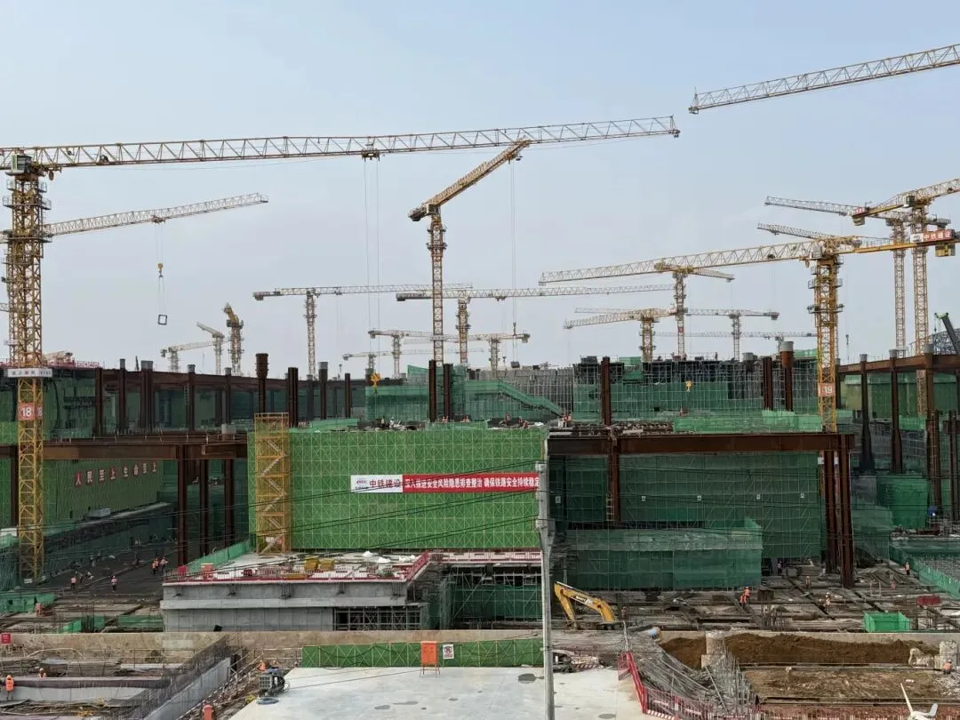 塔吊林立、机械轰鸣,晚上这里更是车灯如昼、焊花似星……4月10日,记者走进南京北站施工现场看到,北站站房主体结构已拔地而起,建设者们正加紧昼夜施工。现场工人告诉记者,整个站房项目分三个标段同步推进,自2024年9月正式动工以来,三大标段便以“百米冲刺”节奏并进。前期土方外运效率极高,为整个项目的“高速”奠定了坚实基础。目前,车站地下结构已全部施工结束,与南广场平接的出站层完成约70%。部分区块已推进至高架层施工,东西两侧已基本完成高架层施工,中间地铁基坑区域因结构复杂,目前大部分处于出站层和站台层施工阶段。