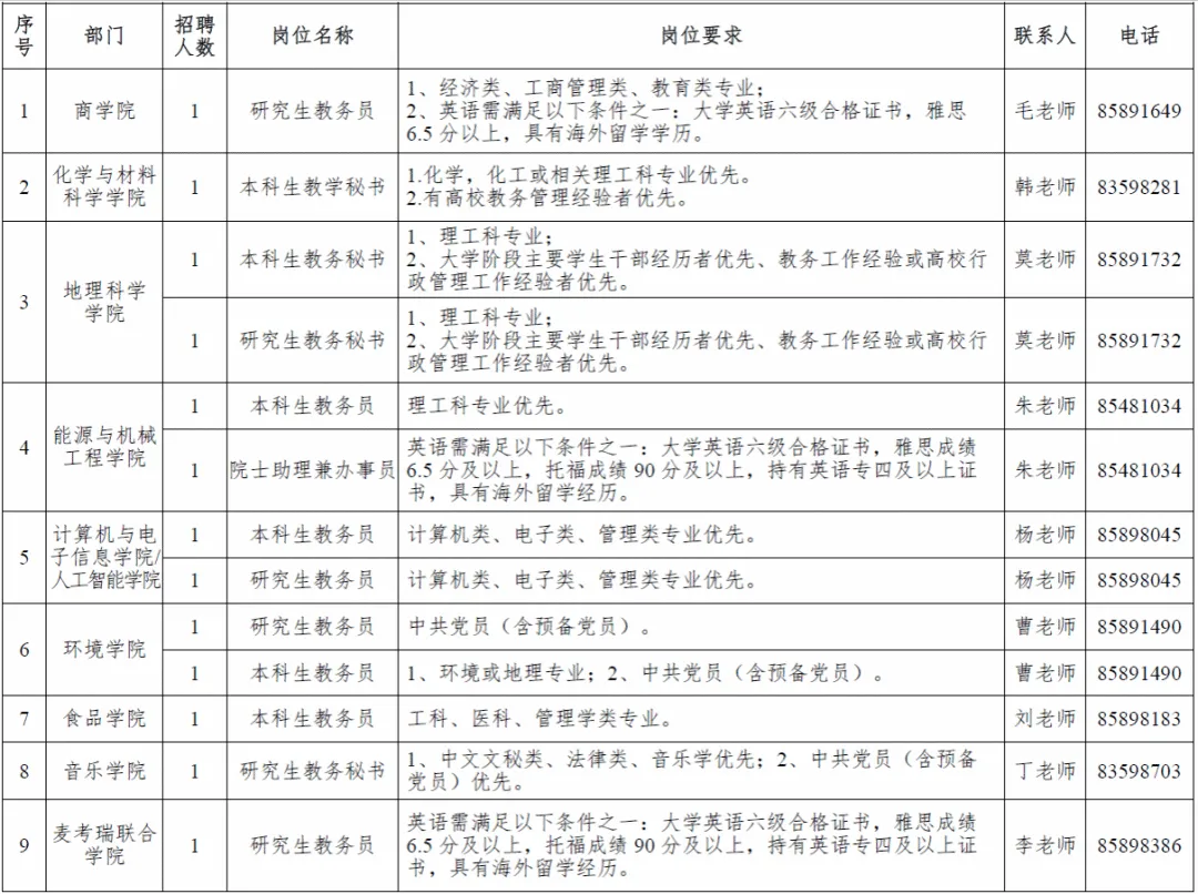 2.遵纪守法,品行端正,团结协作,热爱高校事业。
