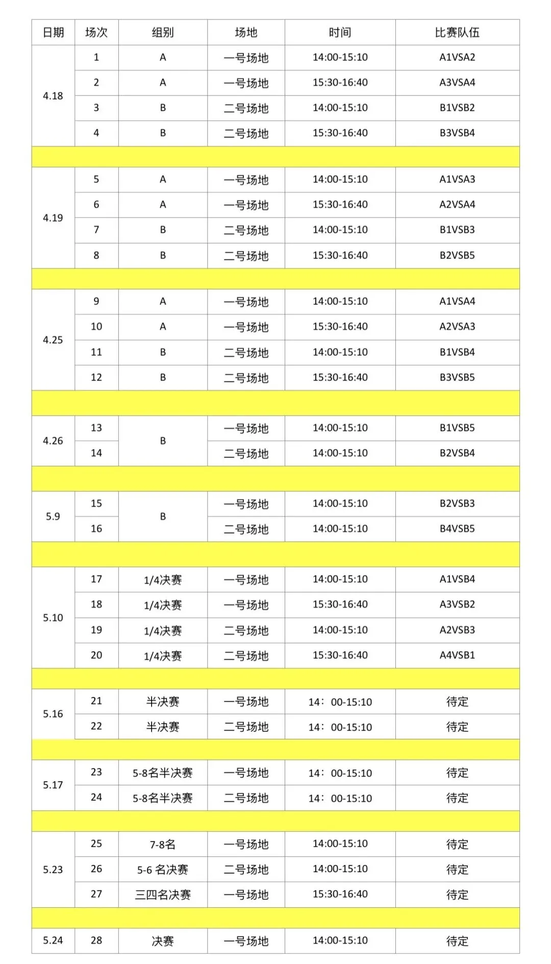 5.赛制为小组赛单循环+淘汰赛赛制,参赛球队通过抽签分为A、B两组,两组前四名进行交叉淘汰赛,获胜者进入下一轮,直至决出前八名。