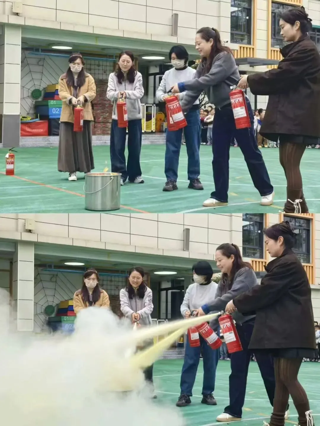 本次消防演练重点围绕消防逃生应急疏散和教职工灭火器规范使用两大内容展开。随着警报声响起,各班幼儿在老师引导下,用手捂住口鼻、弯腰低头,沿预定路线迅速有序撤离至安全区域,整个过程紧张而不慌乱。随后,部分教职工进行了灭火器实操演练,确保人人会操作、遇火不慌张。
