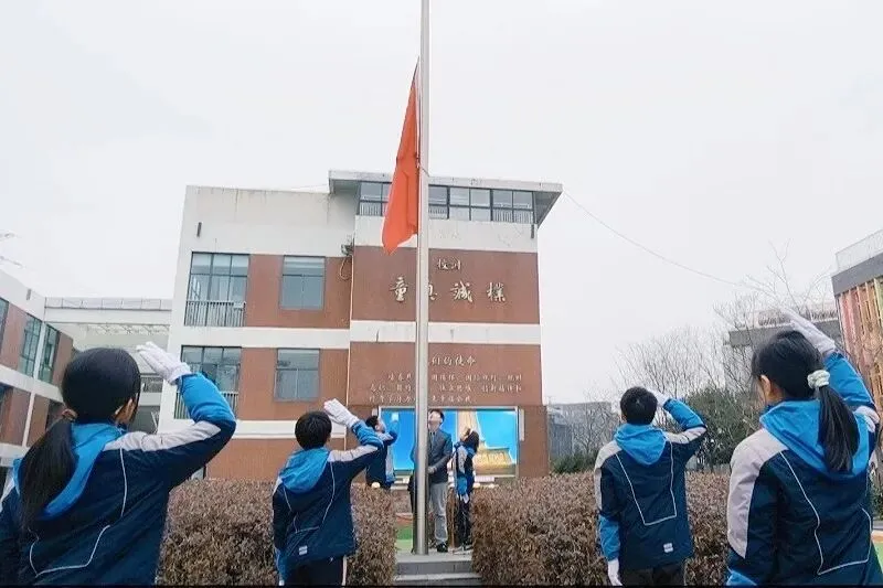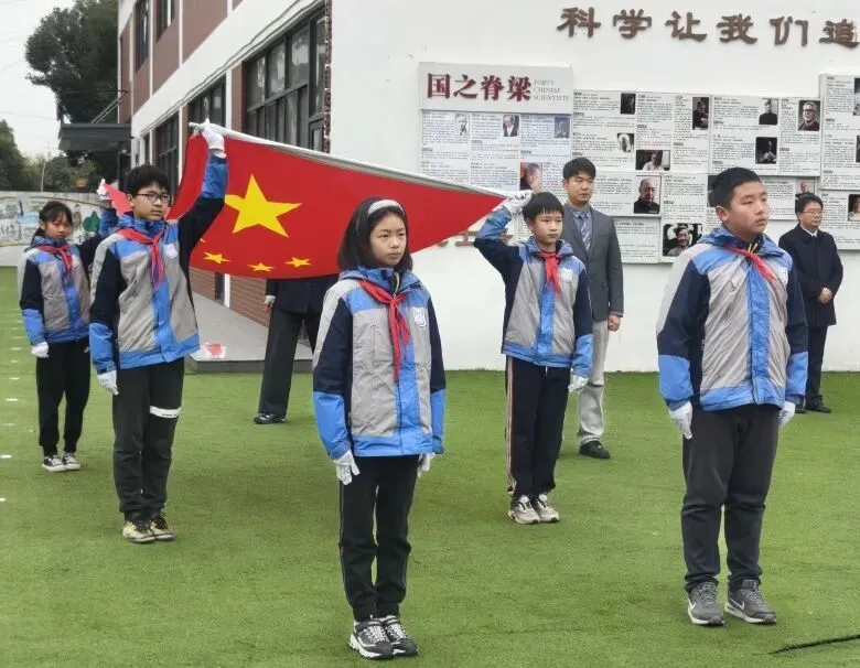 伴随着庄严的乐曲,出旗、升国旗仪式依次进行。五星红旗迎着春风冉冉升起,全校师生行注目礼,在铿锵的国歌中厚植家国情怀,立下奋进的誓言。
