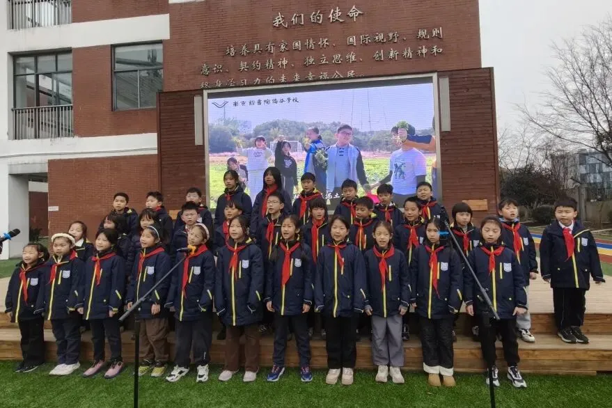 升旗仪式结束后,张猛校长发表了振奋人心的国旗下讲话。他首先回顾了自2017年创校、2018年正式办学以来新书院基础教育改革创新实践及发展历程,充分肯定了学校2018-2024基础教育改革创新实践的成果:学校顺利完成课程重构、评价重构、课堂重构、组织重构、家校共育重构、人才培养机制重构等六大重构,跨学科学习创新实践也已初见成效。同时,校长特别肯定2025基础教育改革创新实践“再升级”,高度评价三大校本必修课程创新项目的亮眼成果:一是由副校长朱轶楠等(6+2)位教师牵头打造全国首创的杏花村自然学校及PBL课程研究院;二是由校长助理杭影等5位教师联合东南大学研发团队(7位)创设的全学段人工智能课程及实验室;三是由学院长陈茜等4位老师牵头负责的学生创新创造实践中心项目。此外,校长还诚挚特别表扬了副校长蔡晰老师负责的“小火车食育文化”项目。该项目成效显著,不仅实现全校师生自助高品质午餐,还实现倒掉剩饭菜的浪费量减少80%,校长对全体师生践行文明给予充分肯定和赞扬。