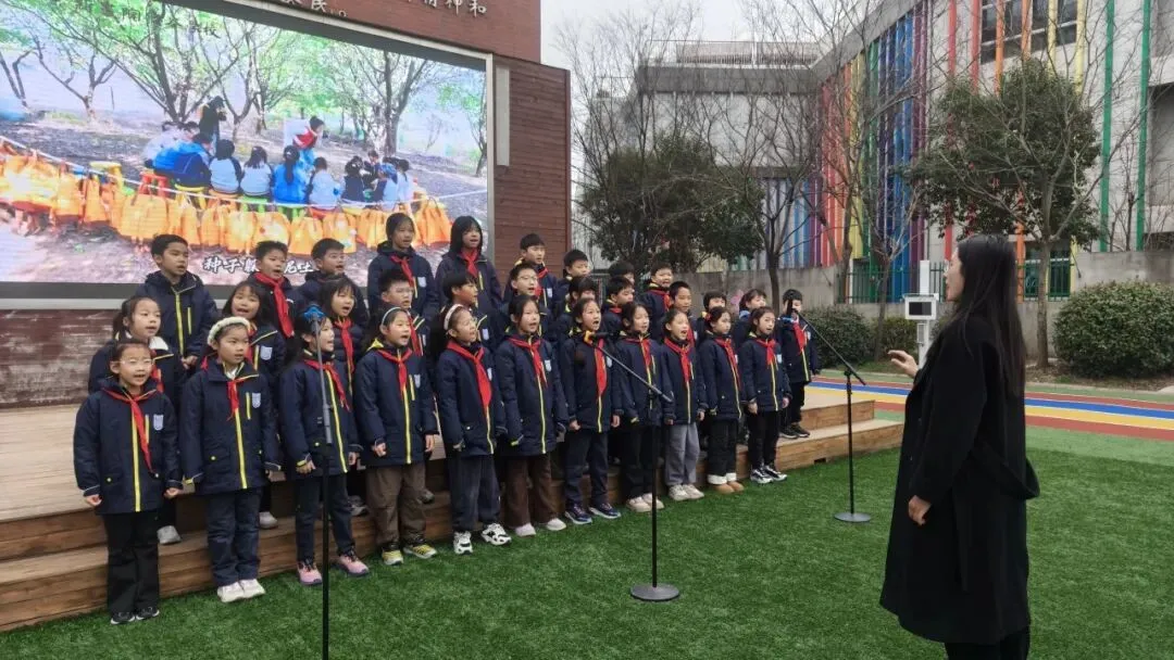 随后,U·Young合唱团合唱团的孩子们为全体师生带来了歌曲《立春》的精彩表演。稚嫩却清亮的嗓音伴着悠扬的旋律缓缓流淌,孩子们站姿挺拔、眼神明亮,脸上洋溢着自信的笑容,将春日的生机与青春的朝气融入每一个音符、每一个动作。表演结束的瞬间,全场响起了此起彼伏的雷鸣般掌声。