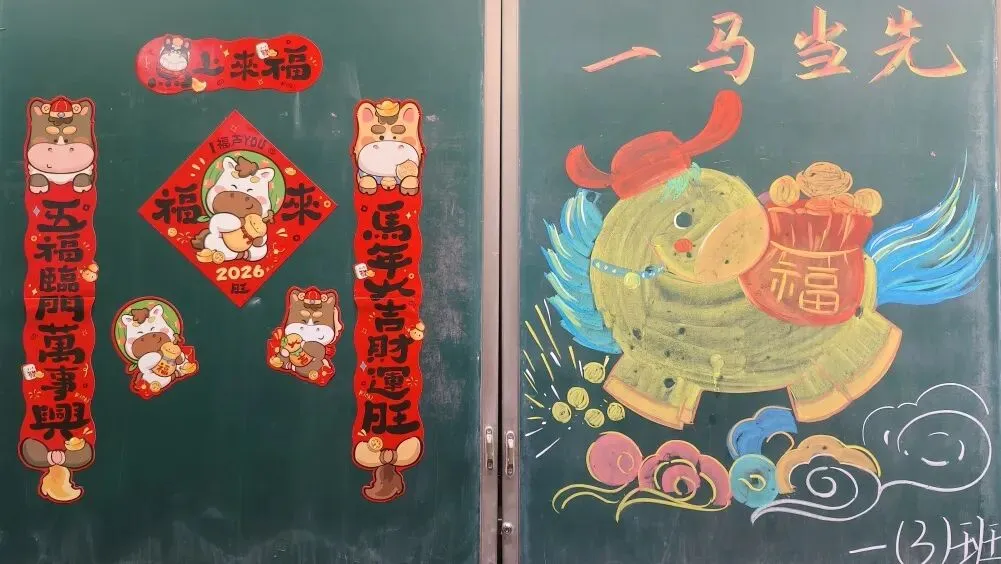 教室里点缀着蕴含“马元素”的精美装饰,黑板上是创意满满的马年迎新板报,置物架上整齐陈列着各类书籍……每一处布置都饱含巧思,每一个细节都透着温暖,让同学们重返校园时,便能真切感受到家一般的温馨与学校的悉心关怀。