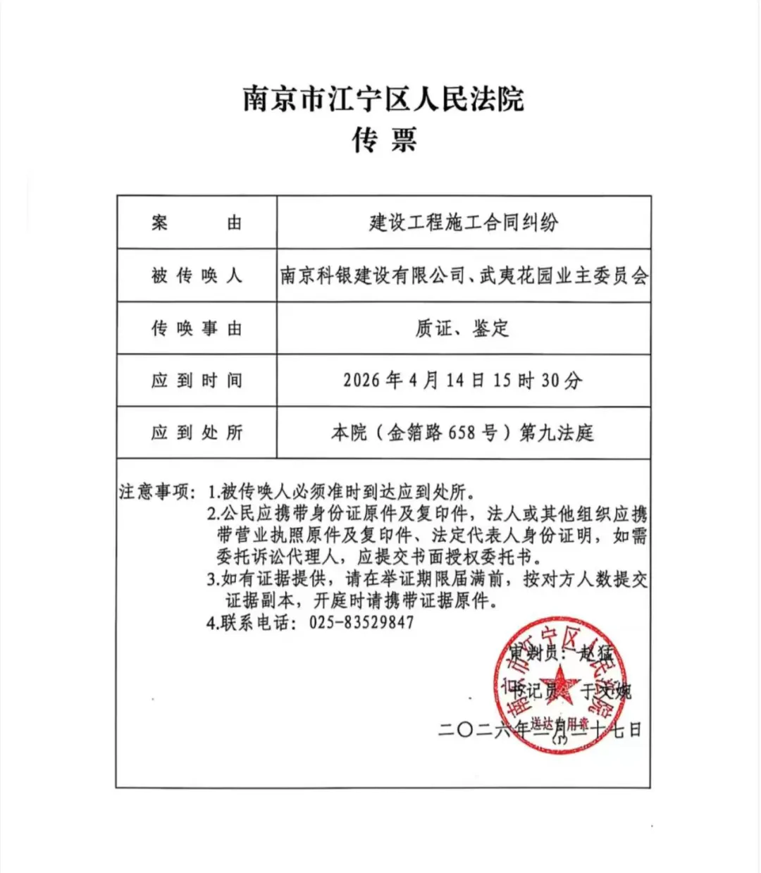 2026年4月14日15时30分,南京市江宁区人民法院(金箔路658号)第九法庭,一场关于“建设工程施工合同纠纷”的质证鉴定程序将正式进行。