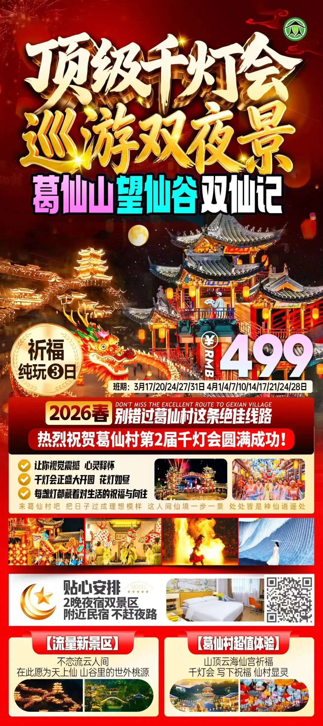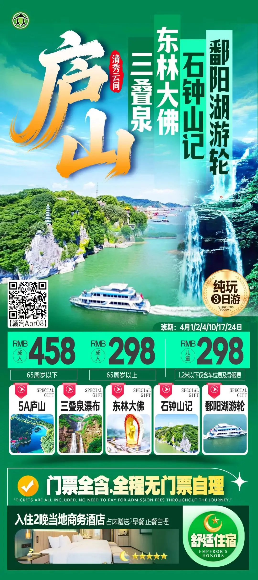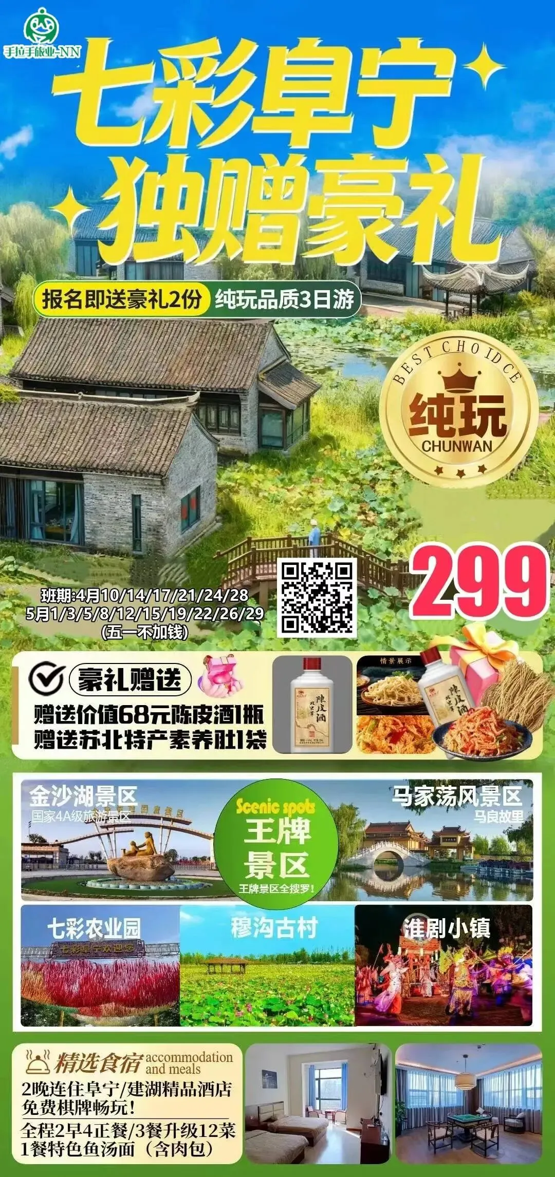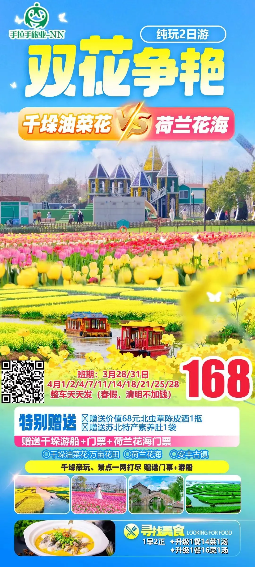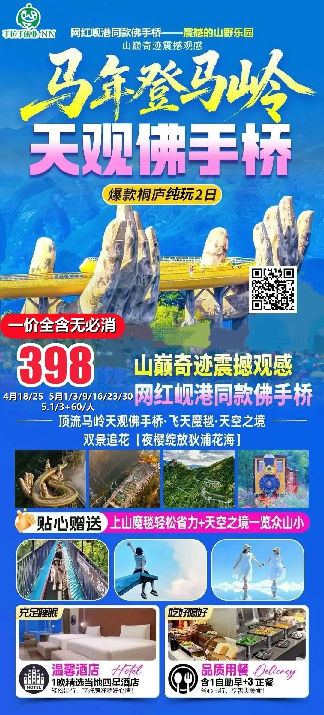 4🈷️17日,铁发,余位34,余位16,单男可拼✔ 4🈷️24日,接近成团,余位22✔ 🌸山水绩溪★康养纯玩5日游 ------------------------ 💰收客价:598+60元 ❤皖浙天路-梅干岭油菜花🔸千年仁里🔸夜游良安古城🔸灵山观澜园🔸徽州古城🔸上庄棋盘村🔸夜游龙川景区🔸胡雪岩纪念馆 ❤特别赠送星空天幕烟花秀➕徽州婚俗表演 ❤独家升级每车满40人赠送一餐烤全羊 ❤免费棋牌、免费唱歌 ❤赠送4早8正餐,餐餐升级13菜1汤,晚餐啤酒畅饮 ❤2晚入住逸享品牌山景度假山庄或同级,含空调,不含洗漱用品 ❤全程车导不套班! [强]纯玩无购物,品质旅游 ------------------------- 🚗上车点:新庄国展 🚌班期:3月10/13/17/20/24/27/31 4月3/7/10/14/17/21/24 |