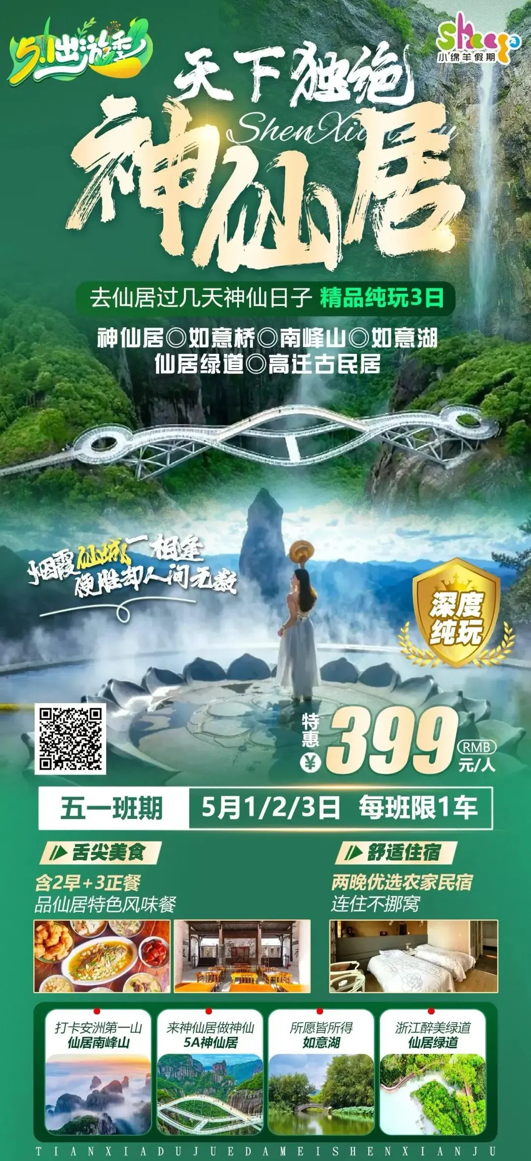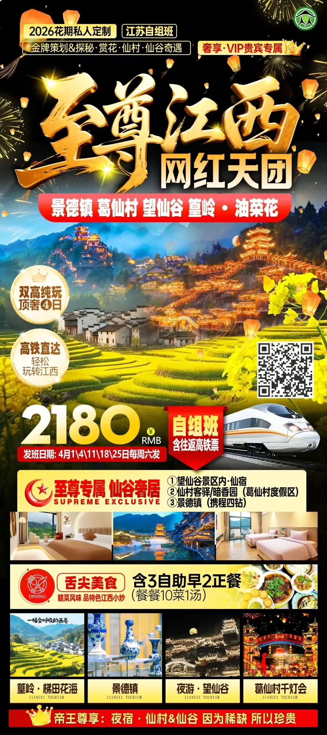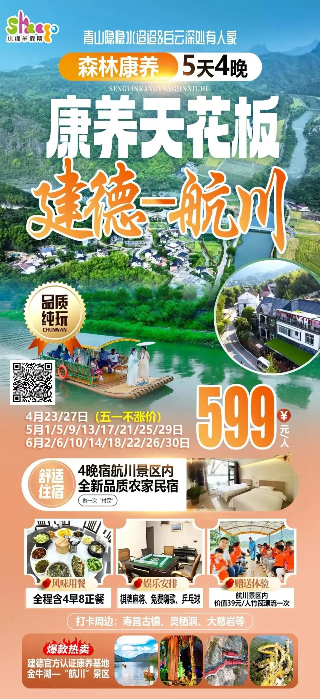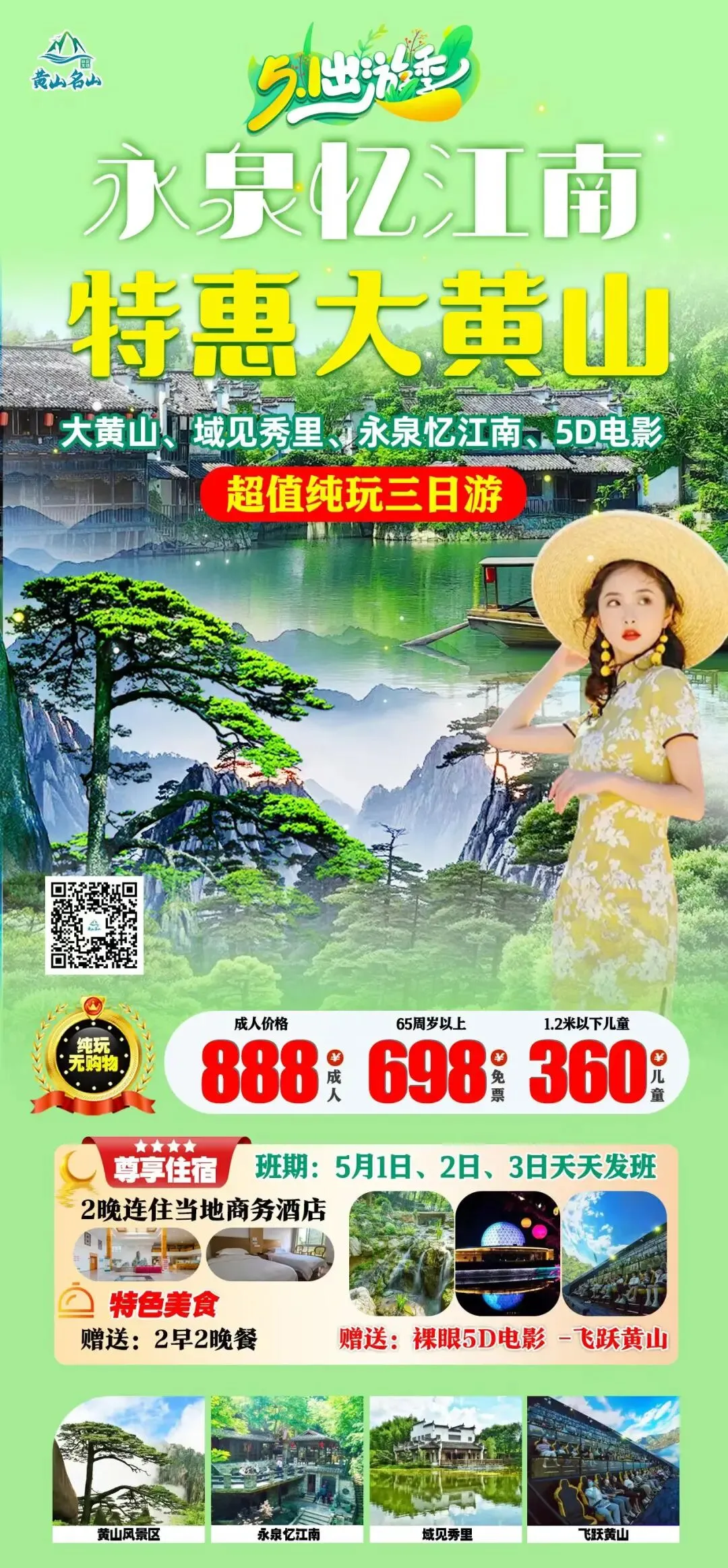 4🈷️17日,铁发,余位34,余位16,单男可拼✔ 4🈷️24日,接近成团,余位22✔ 🌸山水绩溪★康养纯玩5日游 ------------------------ 💰收客价:598+60元 ❤皖浙天路-梅干岭油菜花🔸千年仁里🔸夜游良安古城🔸灵山观澜园🔸徽州古城🔸上庄棋盘村🔸夜游龙川景区🔸胡雪岩纪念馆 ❤特别赠送星空天幕烟花秀➕徽州婚俗表演 ❤独家升级每车满40人赠送一餐烤全羊 ❤免费棋牌、免费唱歌 ❤赠送4早8正餐,餐餐升级13菜1汤,晚餐啤酒畅饮 ❤2晚入住逸享品牌山景度假山庄或同级,含空调,不含洗漱用品 ❤全程车导不套班! [强]纯玩无购物,品质旅游 ------------------------- 🚗上车点:新庄国展 🚌班期:3月10/13/17/20/24/27/31 4月3/7/10/14/17/21/24 |