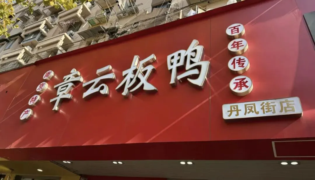 丹凤街分店。章云板鸭是南京的老字号了。很多人都在推章云的板鸭,但除了板鸭,烤鸭也还不错。烤鸭稍微有点肥,但肥而不腻,酱板鸭则是咸甜口的,带点酱香,各有千秋。