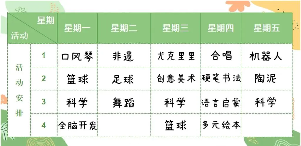 (每学期的课程及时间安排会根据实际情况有所调整)