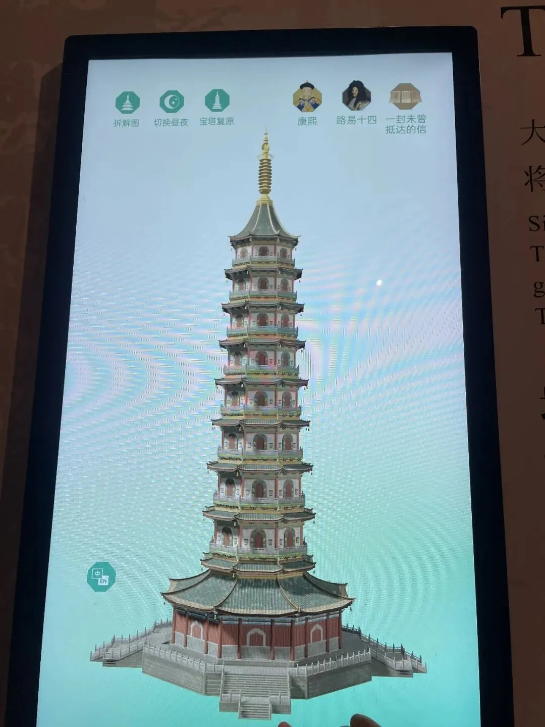 但在互动体验区,看到多媒体技术还原的琉璃塔原貌,包括精细的琉璃构件,让人有一些震撼。