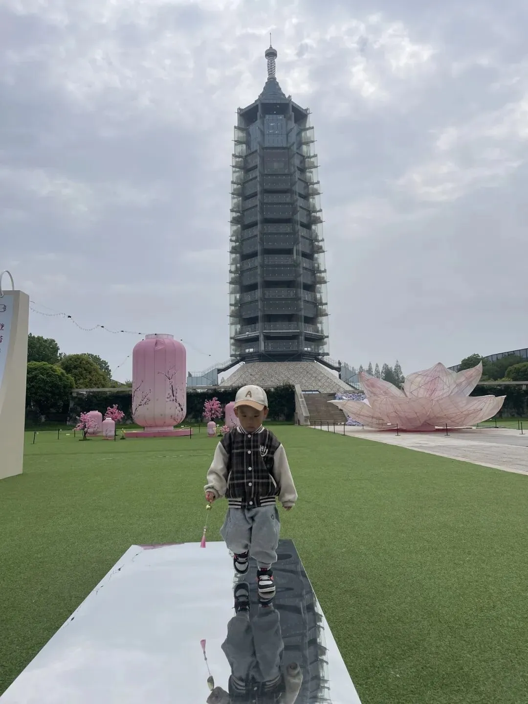 只可惜,小恒太调皮,怎么都没抓拍到人与塔四合一的照片。