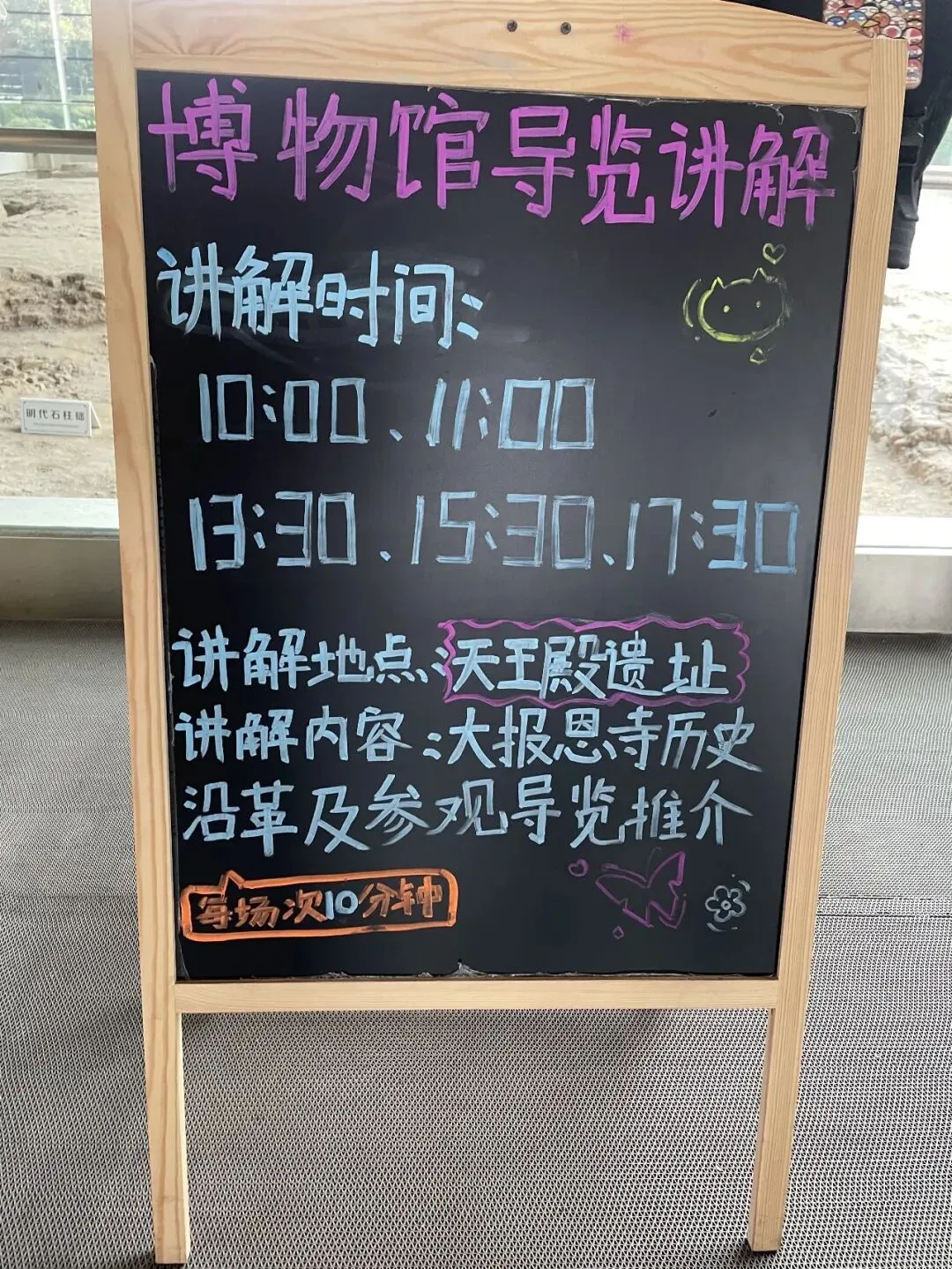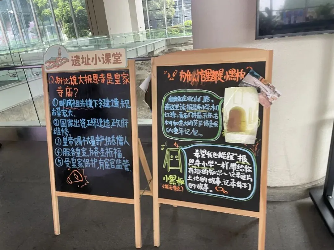 在几个遗址的介绍区,有几块小黑板写着小贴士,用很可爱的字体,直白地讲述遗址背后的故事。