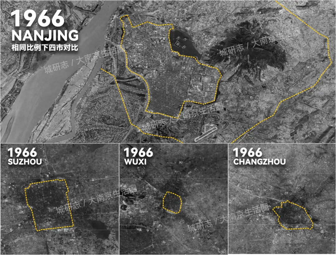 众所周知,不少城市在现代化的城市扩张过程中,通过行政中心的果断转移,在今天都实现了新城为主导的城市结构,而老城更多以单一化的功能服务于城市,比如商贸文旅等,但南京有些特殊。南京老城(城墙内)的框架尺度极为庞大,以1966年的影像为例,很多城市的城墙或护城河尚存,清晰可见。相较于同时期的苏锡常,南京绝对算是巨无霸一般的存在,如果再算上明外郭,这种城市框架尺度上的差异还要更加突出。当然明城墙这么大并不代表城内全都住满了人,事实上南京相当长的历史阶段中,人口都是主要集中在城南一带的,明代东侧为皇城,北侧则更多是配套设施,比如国子监、小教场、鸡鸣寺等,西北侧的大片区域则是军营。这些区域都不是真正的人口的集中区,但都属于都城的配套设施。后来权力中心转移到北方,很多曾经的配套功能也就弱化了,明故宫也在岁月的长河中逐渐成为废墟。而19世纪末到20世纪上半叶,伴随着南京地位的回升,尤其是全国行政中心的确定,南京必然要经历一波高强度的开发周期。而当时的南京城内,北部和东部存在大面积未开发或废弃区域,也就顺理成章成了当时最优先开发的板块。可见,站在20世纪上半叶的角度来说,南京城内的北部和东部就是当时的新城区。一系列新式的学校、医院、行政机构、甚至是机场等都扎堆安排在了这里,这也是为什么今天的老主城会聚集那么多核心资源的根本原因。而这个北部、东部强力填充的过程,甚至一直持续到21世纪初期,比如堪称南京封面的紫峰大厦(最高楼)就是在2005年开工,2010年投用的。可见南京江南主城在综合影响力这一方面有多么强大,那么长江对面呢?受古长江影响,江北老山滨水一侧大片区域在相当长的时间内都被长江所覆盖,那个时候老山也是南京长江以北天然的地理屏障,唯一的缺口就是桃叶山一带,山下有江渡名“桃叶渡”。因此隋开皇八至九年(588-589),晋王杨广起兵伐陈,才会选择在此筑“晋王城”屯兵。