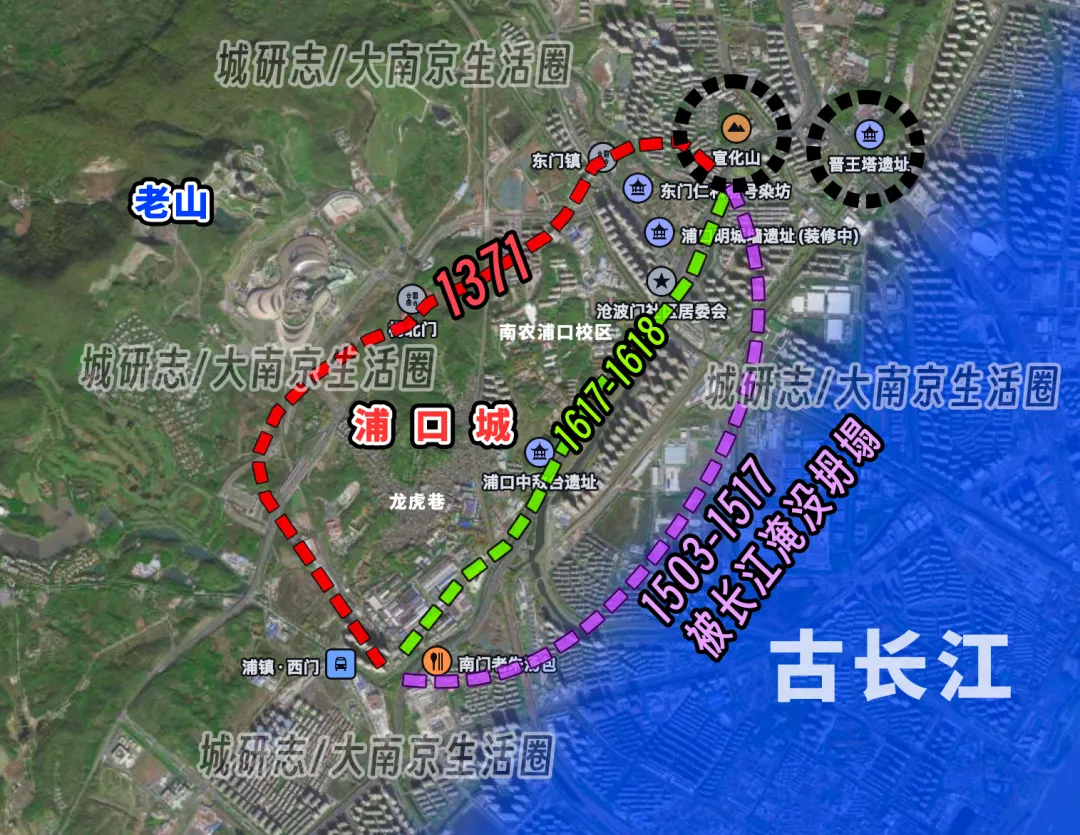 后来江水退掉之后,老山南侧形成的陆地,弱化了老山的屏障功能,对南京江南主城构成了潜在威胁,因此明代,才会进一步修建浦口城和江浦城,都是出于拱卫京师(南京)的目的,从一开始,功能定位就很明确。城市规模也好,人口也罢,自然都处于一个相对普通的水平。