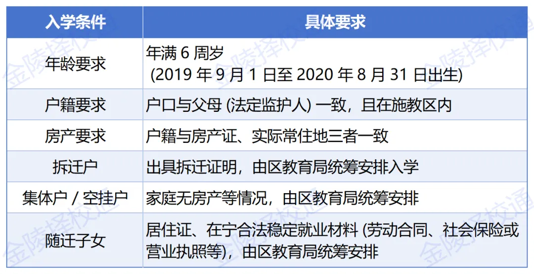 满足户籍所在区的最晚落户时间要求(一般是学校报名开始前或政策发布前,但去年栖霞区仍要求在招生报名前一年);