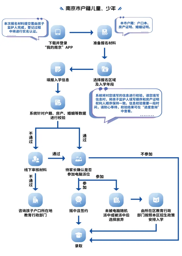家长可以选择直升或参加摇号。参与南京幼升小摇号,首先必须具备南京户籍;