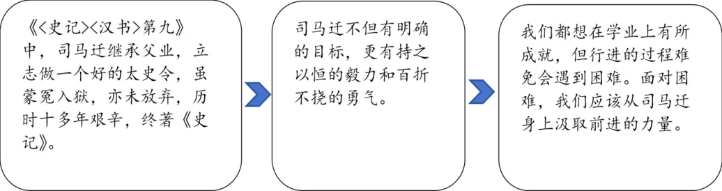 示例二:①《经典常谈》中介绍的《史记》《汉书》,展现了古代史学的辉煌成就,司马迁、班固等史学家的著述精神令人钦佩。②《史记》开创纪传体通史先河,司马迁以“究天人之际,通古今之变,成一家之言”为宗旨,广采史料,客观记录历史人物与事件,其严谨态度和卓越史才铸就史学丰碑;《汉书》则是第一部纪传体断代史,班固在继承父业基础上,精心编纂,对西汉历史进行系统梳理,为后世研究提供重要依据。他们面对资料搜集难题、政治压力等困境,仍坚持不懈,为史学奉献。③当今时代信息繁杂,我们在学习、研究中也会面临诸多挑战。应从这些史学家身上汲取力量,学习他们求真务实、坚韧不拔的精神,以更严谨的态度对待知识,在追求真理的道路上不断前行。