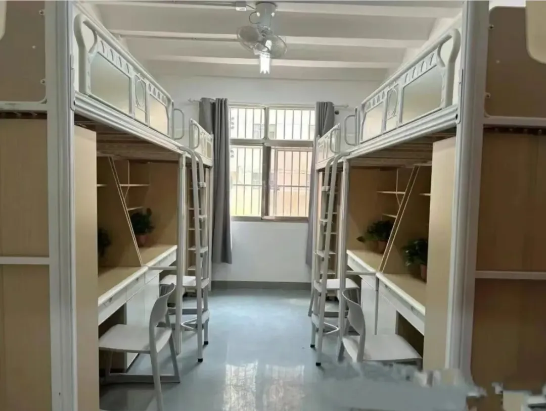 三大校区宿舍均采用上床下桌布局,保障独立学习与生活空间,配备热水炉、独立卫浴、洗衣房等基础设施,刷脸门禁系统提升安全性,每栋宿舍楼均有专职楼管提供服务。各校区宿舍特色各异:
